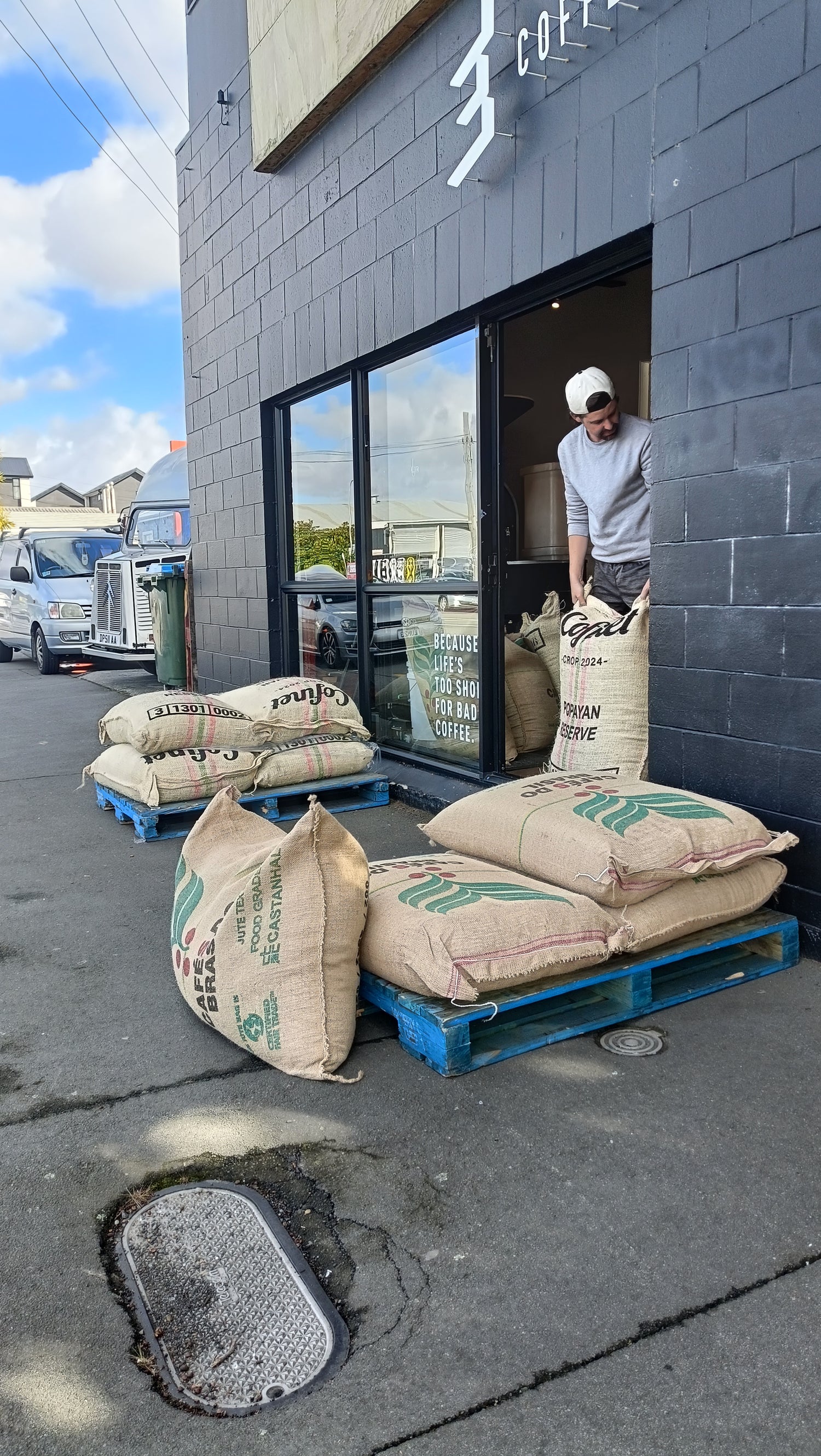After the 2011 Christchurch Earthquakes drove David out of his previous business’ premises in the city centre, he found a new spot for his cafe, at the intersection of Lichfield St & Fitzgerald Ave, inside what was once an old mechanic’s workshop. Since then, it’s become the Coffee Embassy headquarters, home to our 15kg Joper roaster, our Cellar Door coffee bar, and our Embassy team of five.