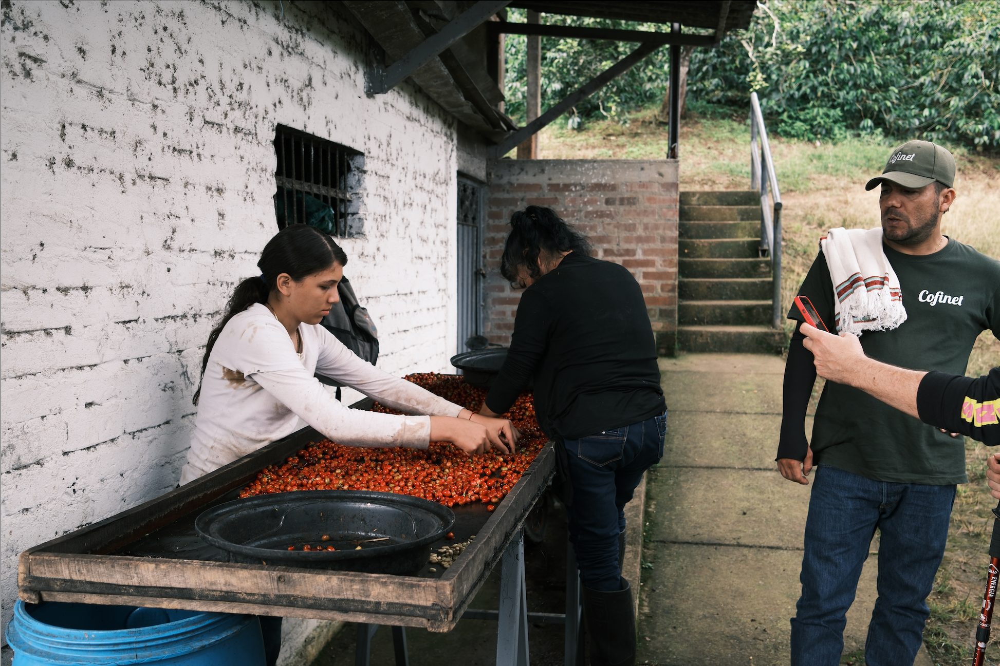 For this lot, the team of pickers harvest only the ripest Red Gesha cherries, which are then carefully transported to Cofinet’s processing centre, La Pradera. To preserve their freshness, the cherries travel in GrainPro bags or suitable containers during the cool early morning hours, a crucial step to prevent over-fermentation.